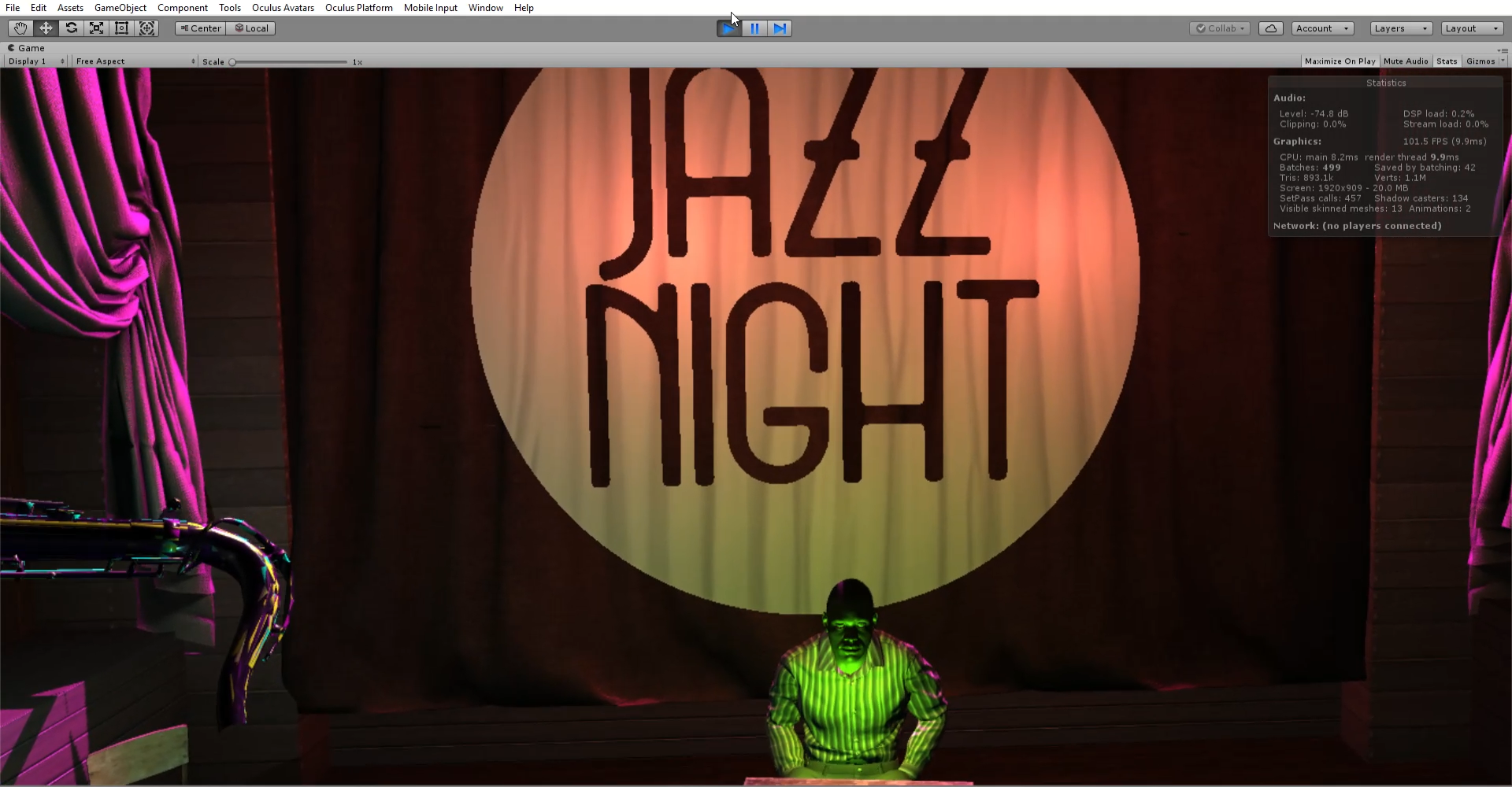I developed a VR game in Unity called "Jazz Night".